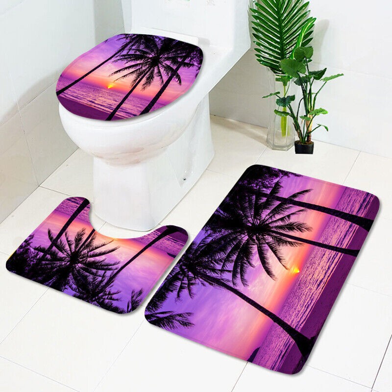 Shower curtain size: 180x180cm / 70.9x70.9in Bath mat set size: Square size: 75x45cm / 29.52x17.7in U shape size: 45x37.5cm / 17.7x14.7in Toilet cover size: 38x35cm / 15x13.7in,Manual measuring, please allow 1 ~ 5 cm error,thank you.
