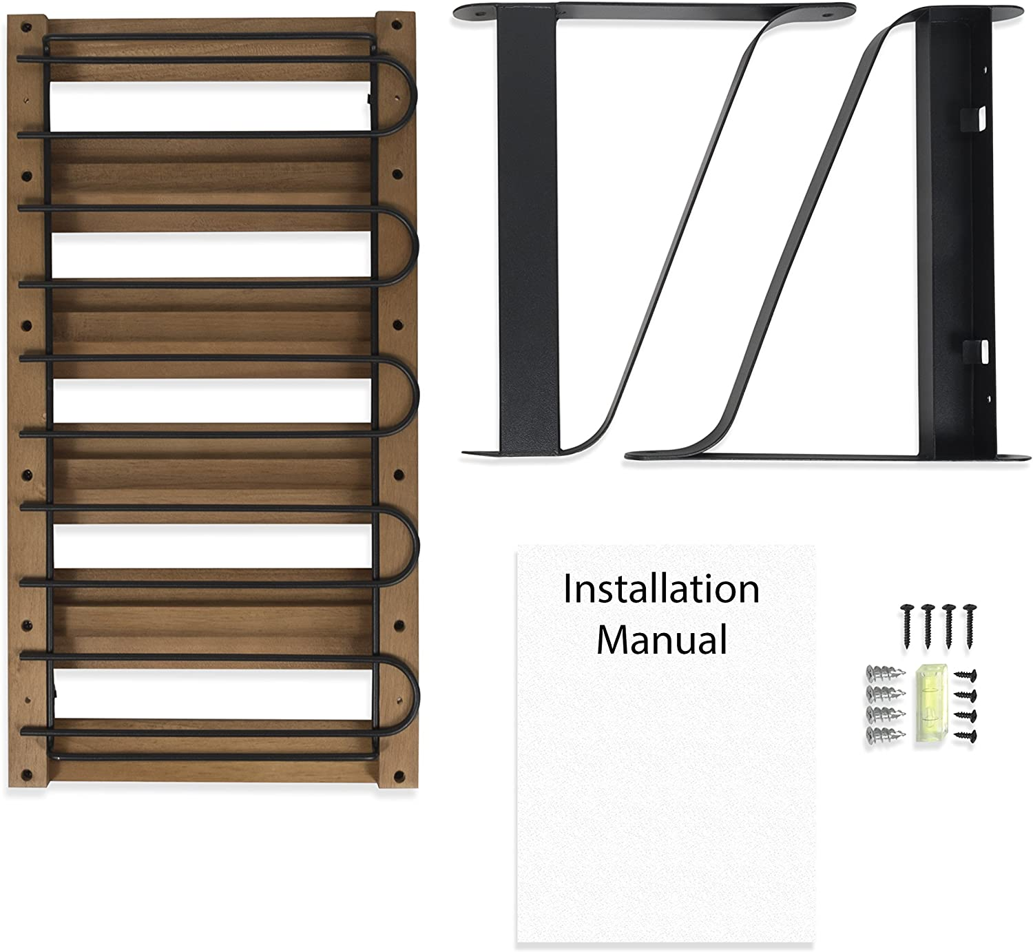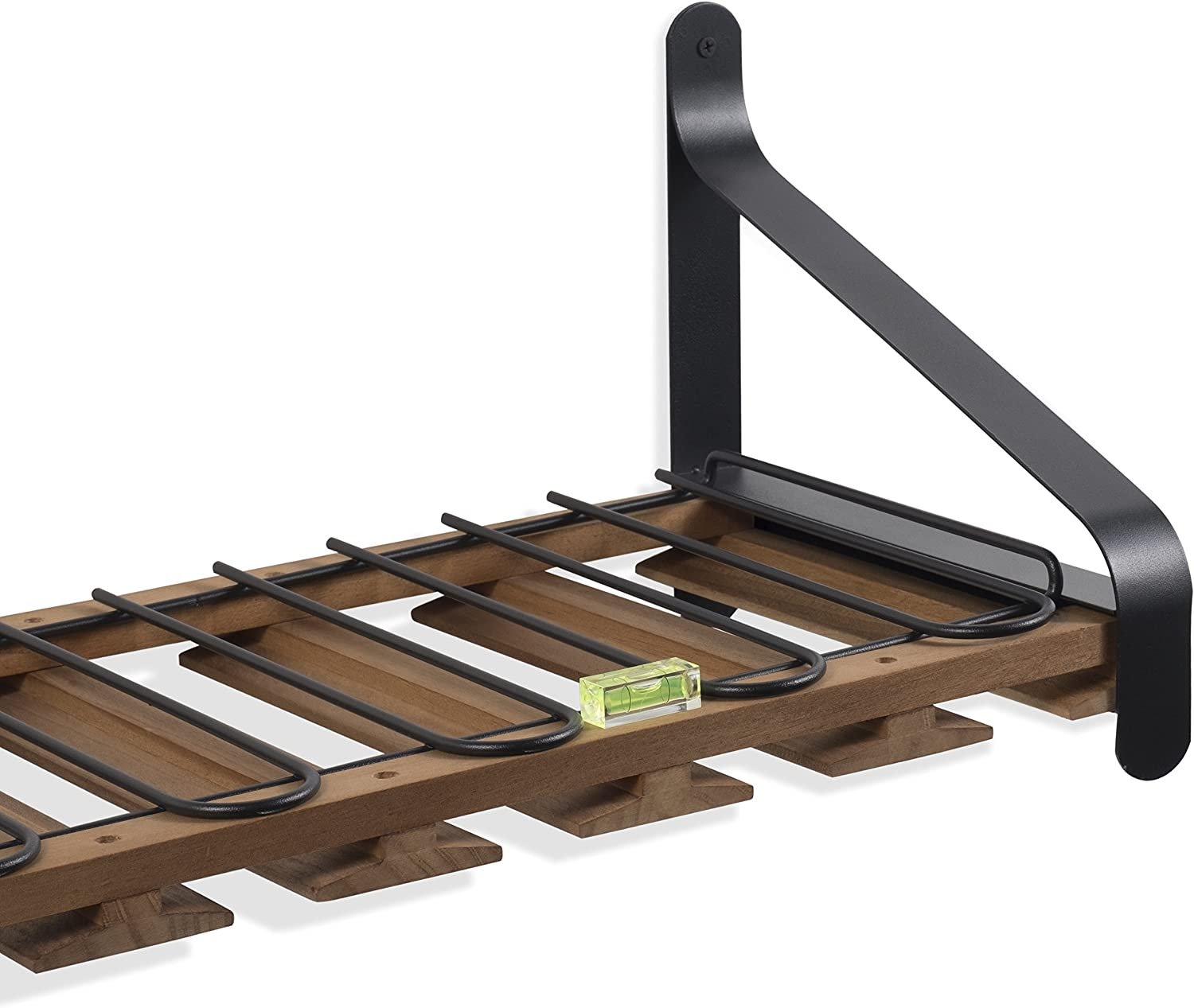 Barrel Wall Mount Wood Floating Wine Rack with Glassware Holder Stemware Shelf O