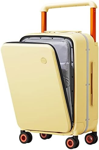 Mixi Carry On Luggage Wide Handle Luxury Design Rolling Travel Suitcase PC Hardside with Aluminum Frame Hollow Spinner Wheels, with Cover, 20 inch, Lark Yellow